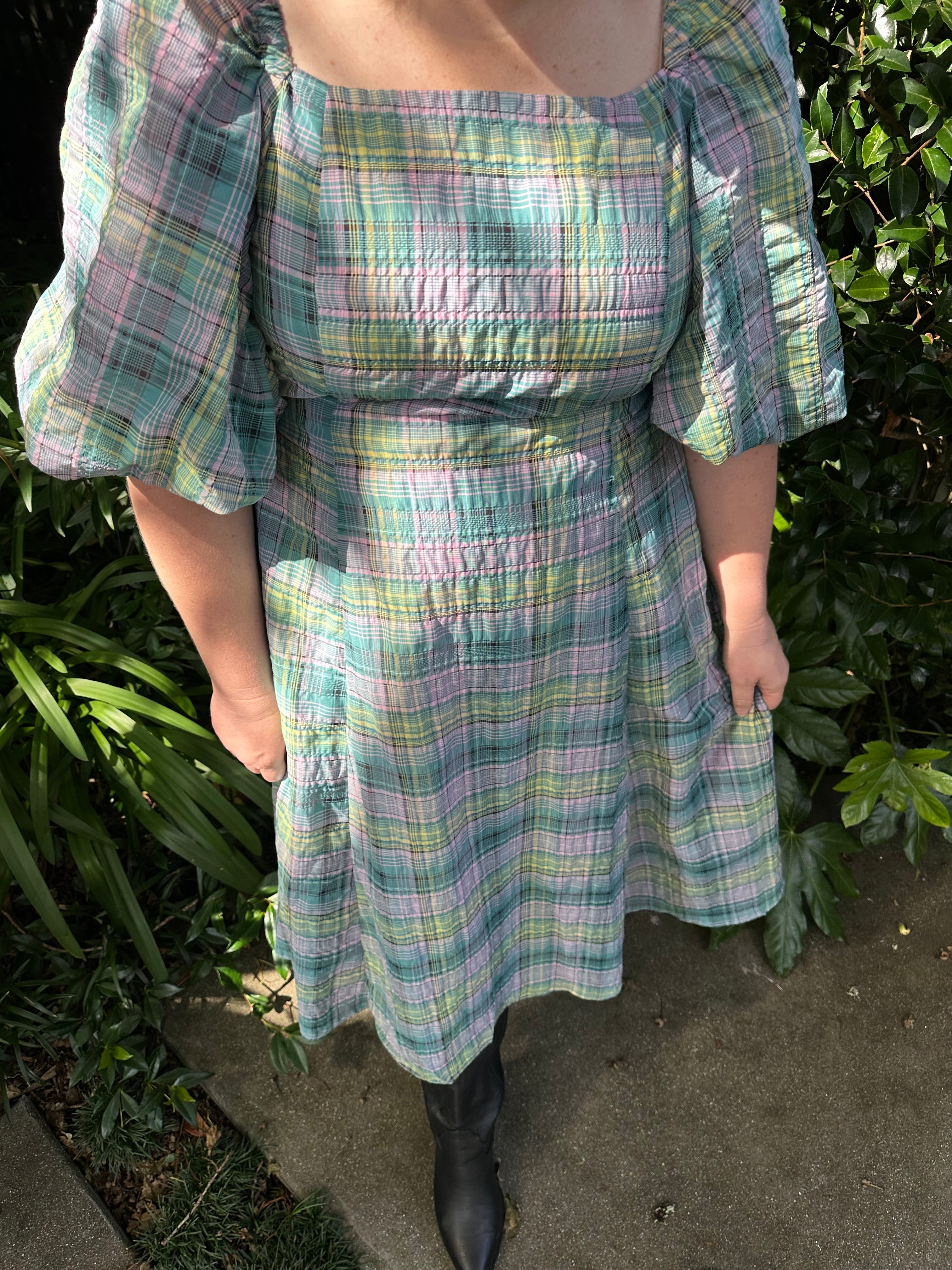 Katie Dress – Cotton Blend Seersucker Check