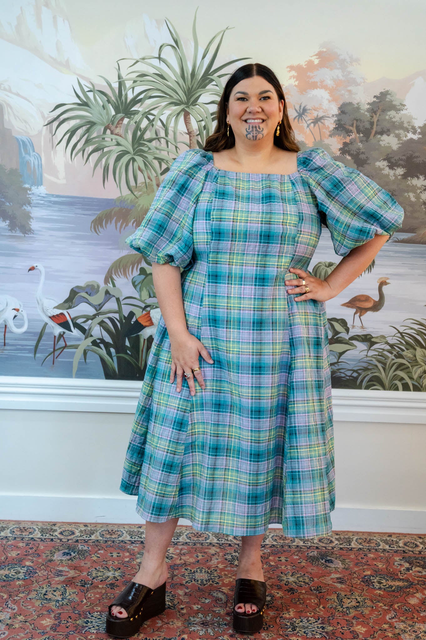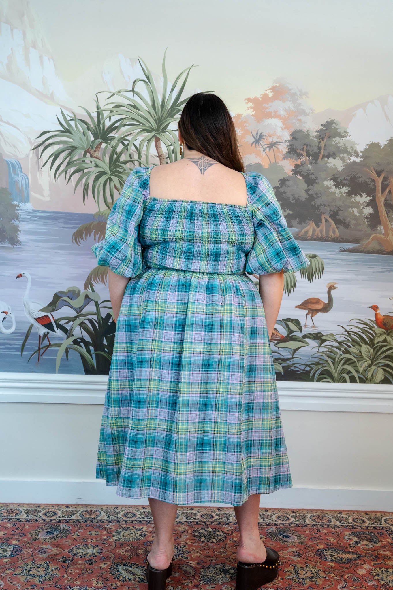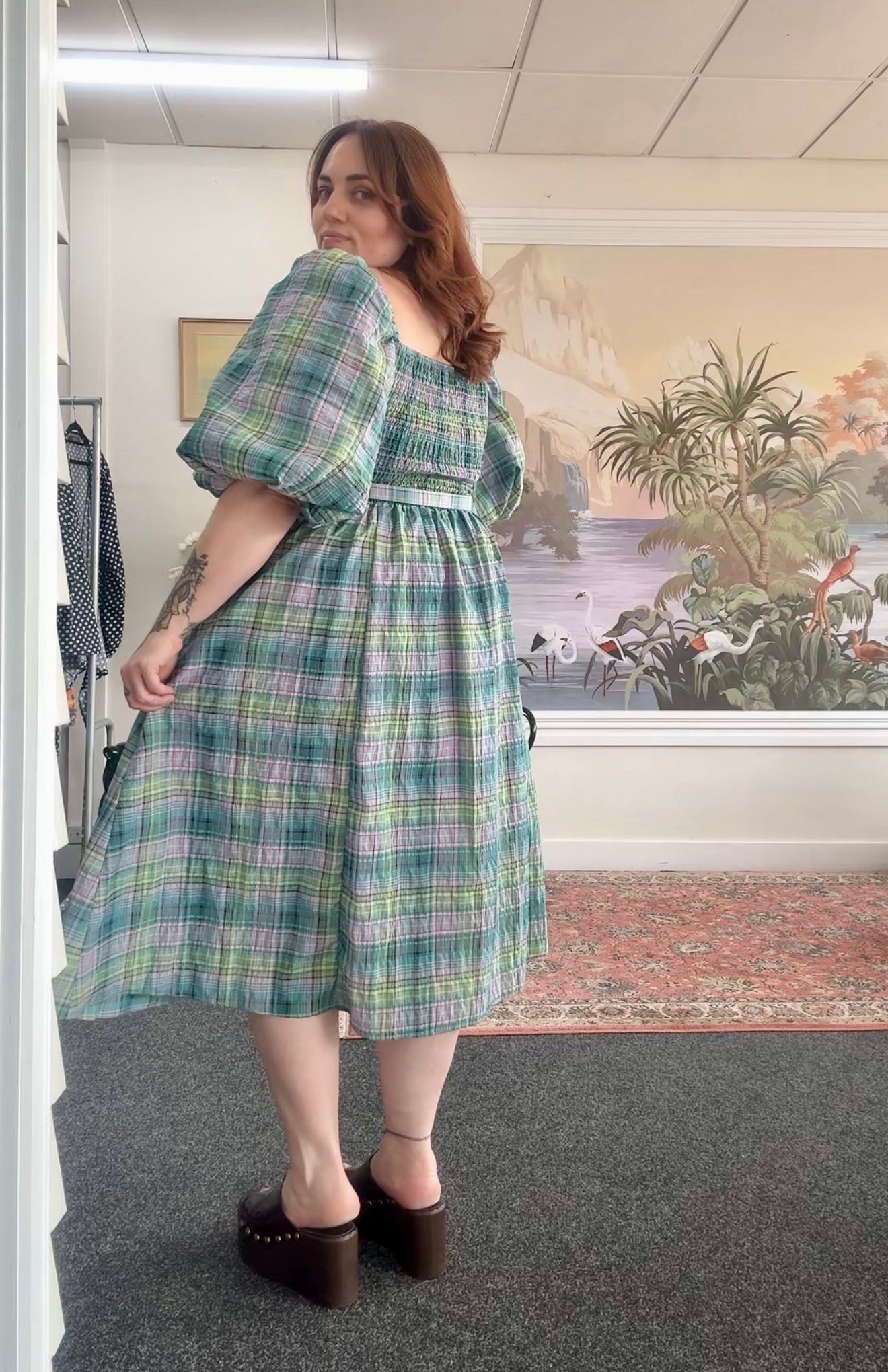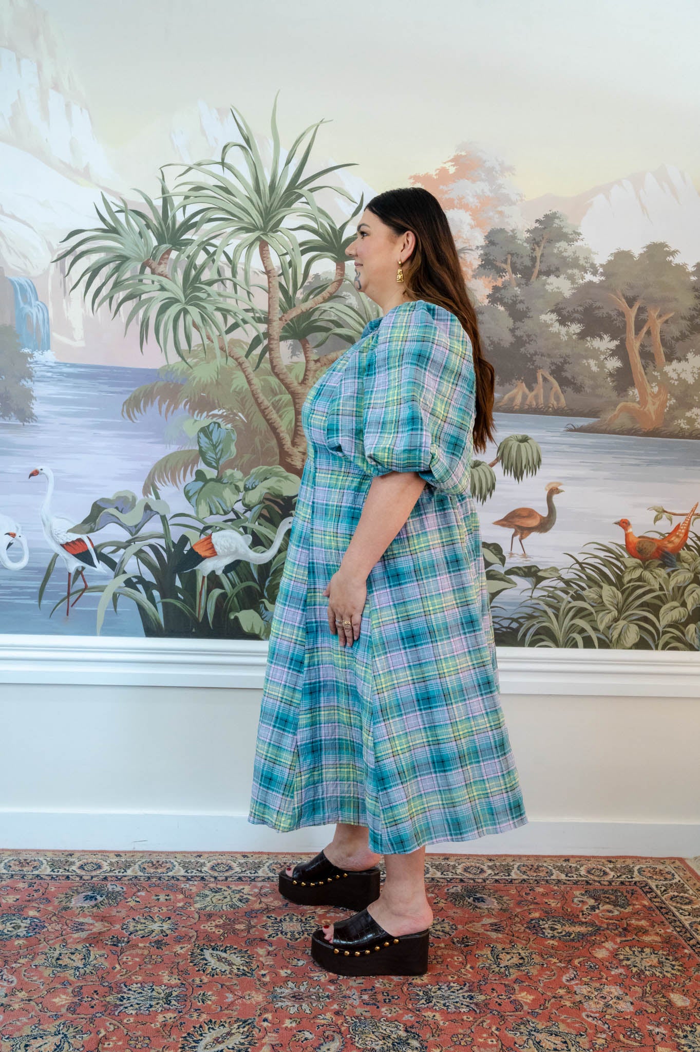 Soft puff sleeves add gentle volume through the shoulder while sitting at a flattering length on the arm, and the fitted bodice balances the relaxed skirt perfectly.