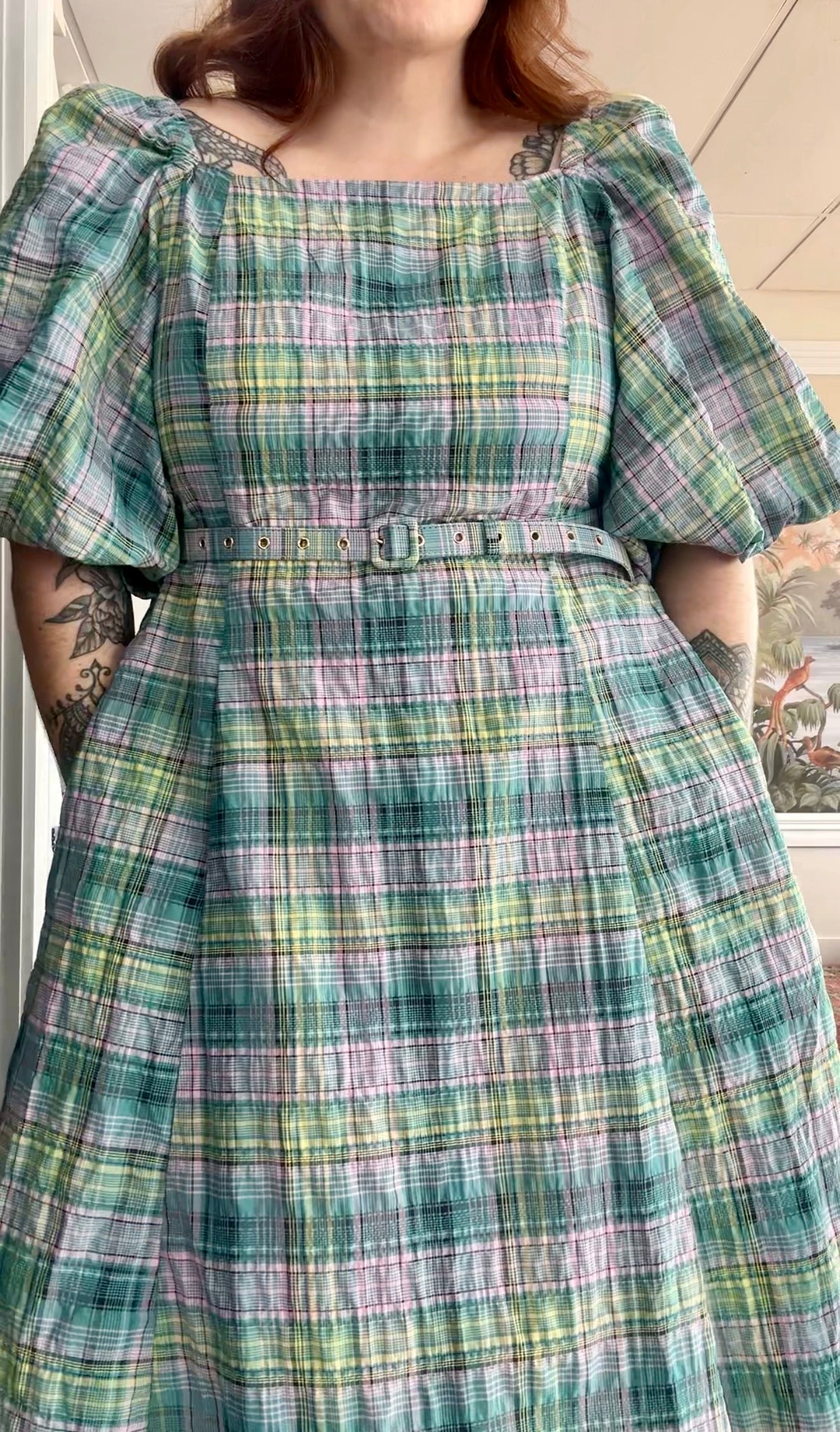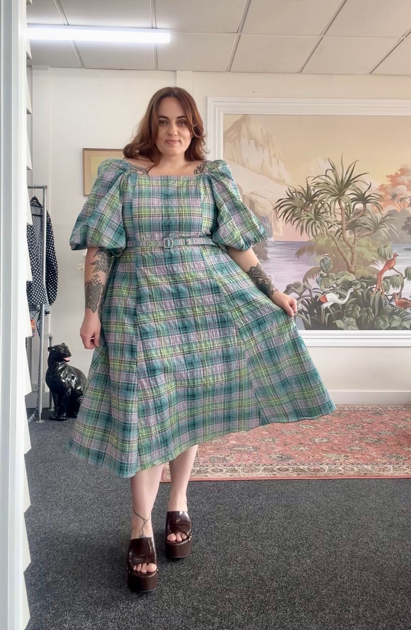 The dress also comes with a matching belt in the same fabric, allowing you to nip in the waist for extra shape or wear it loose for a more relaxed look.