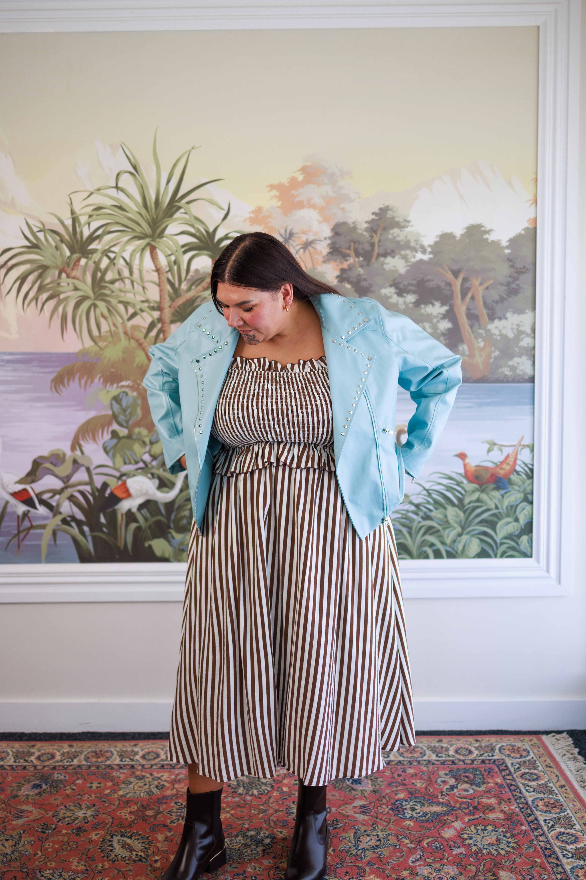 Layer the Patsy Biker Jacket over dresses, denim or wide-leg pants for an easy everyday outfit. A great piece for adding a little edge to both casual and dressy looks.