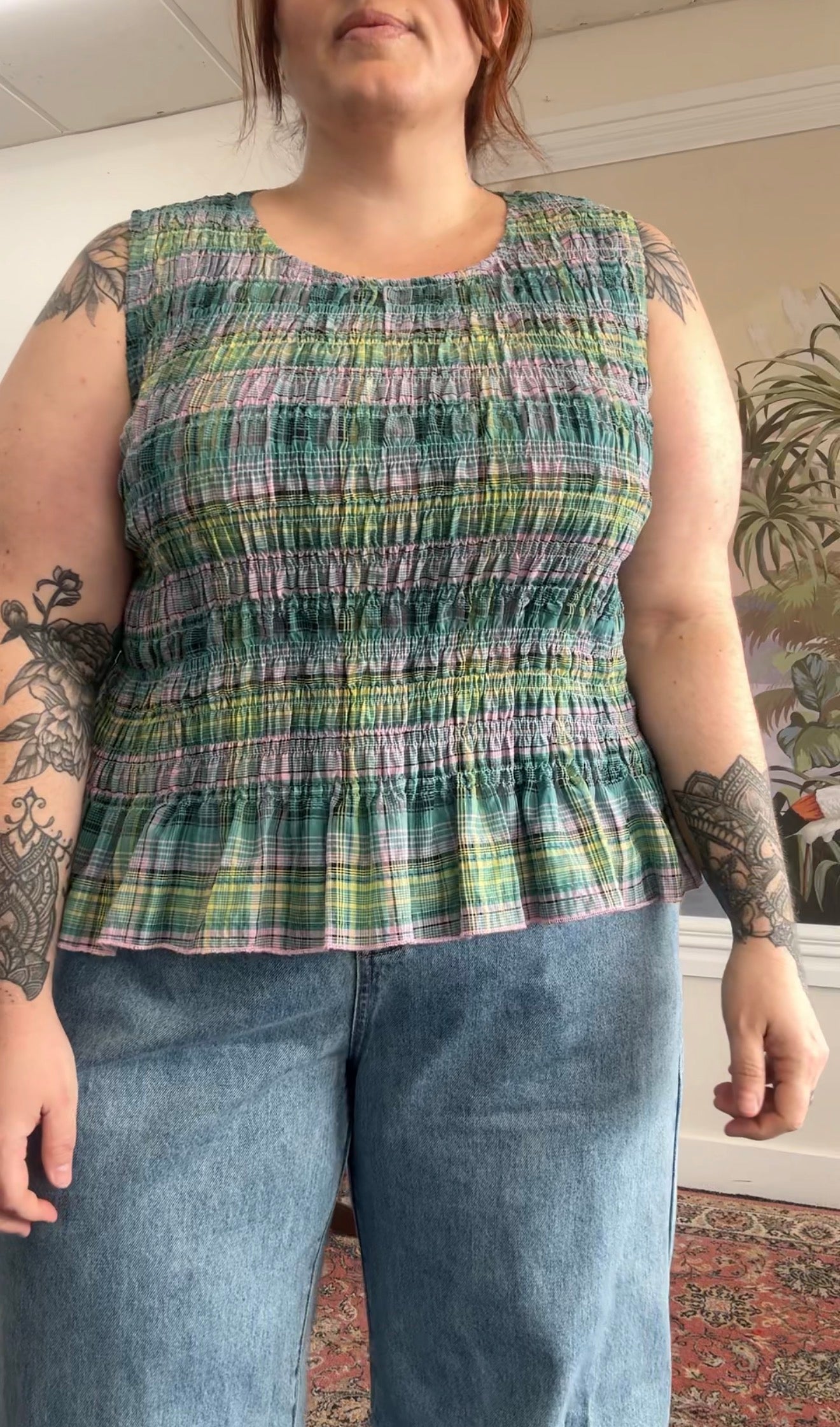 Aria Top – Check | Plus Size Ruched Peplum Top