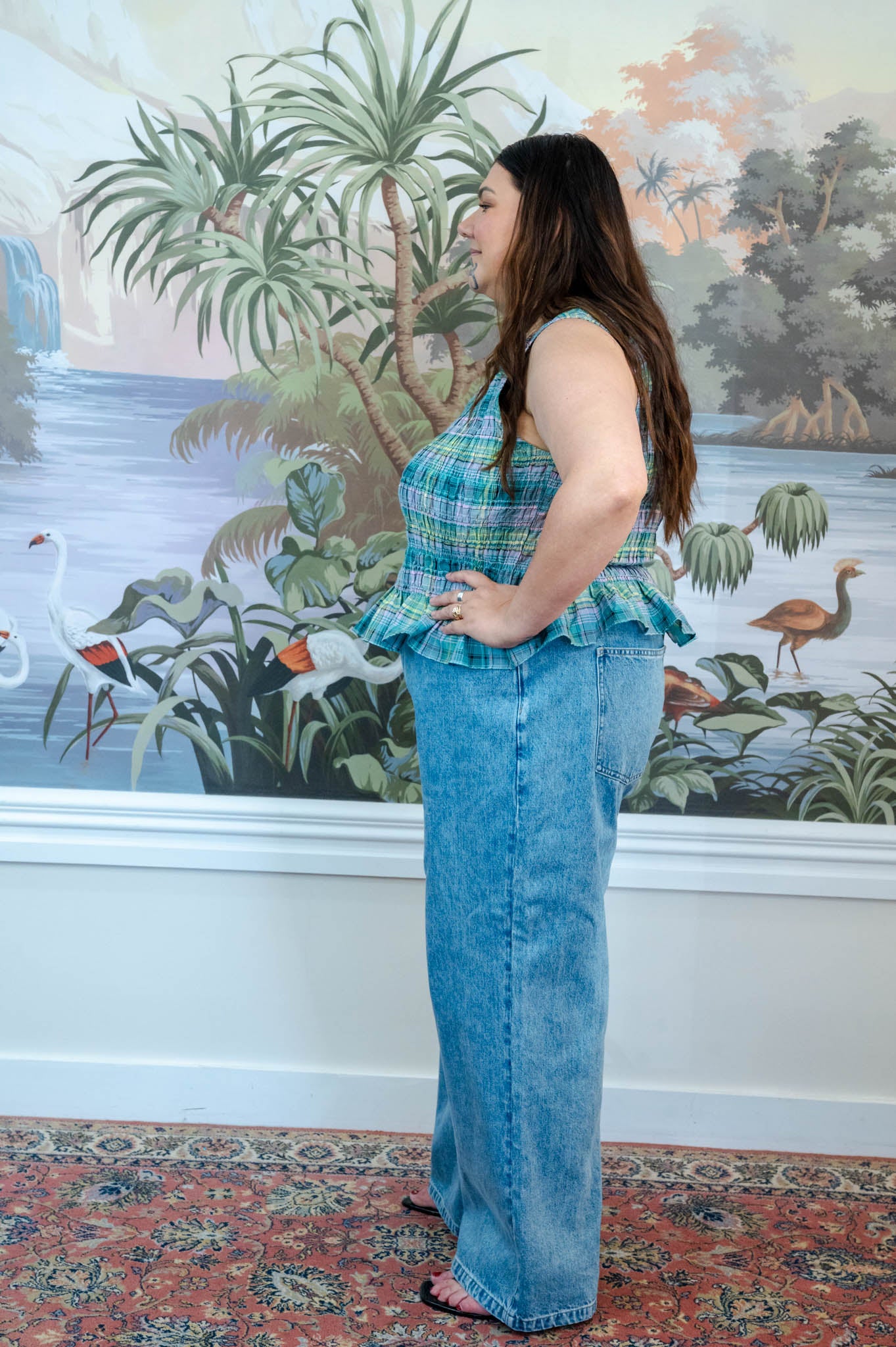 Featuring a fully smocked bodice, this stretchy plus size peplum top hugs in all the right places while remaining incredibly comfortable to wear all day. The soft cotton blend fabric offers excellent stretch, making it an easy and flattering fit for curves.