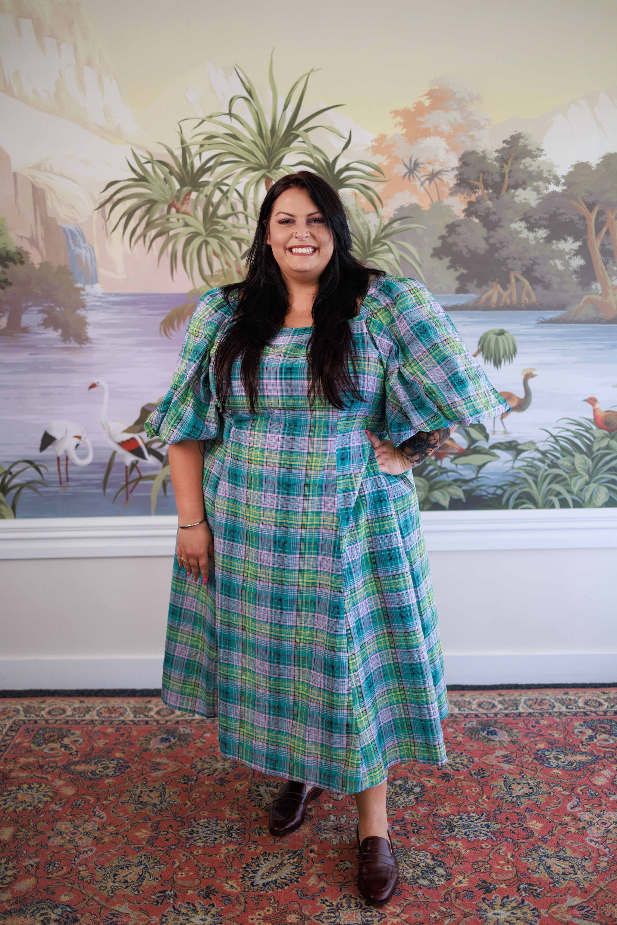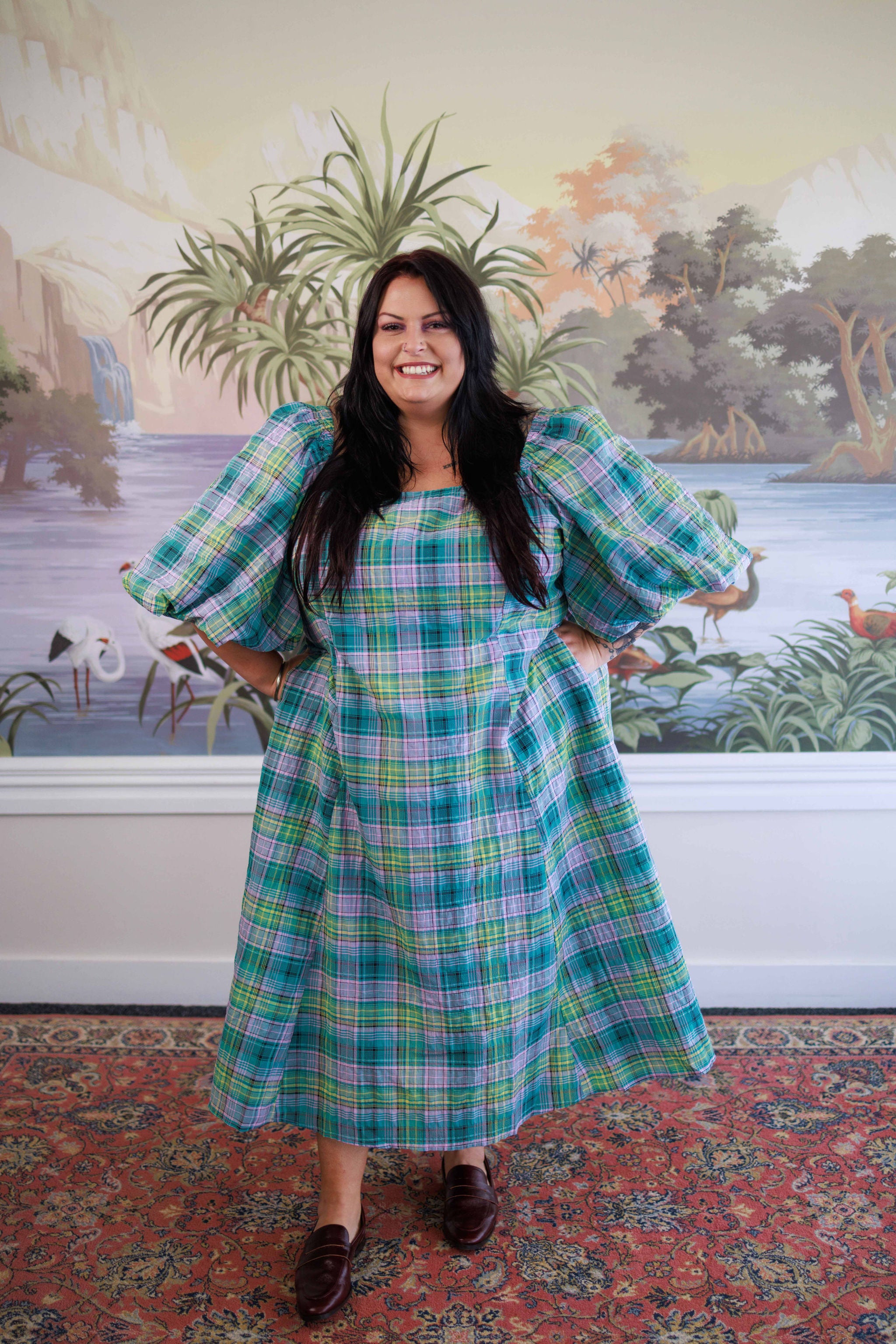 Soft puff sleeves add gentle volume through the shoulder while sitting at a flattering length on the arm, and the fitted bodice balances the relaxed skirt perfectly.