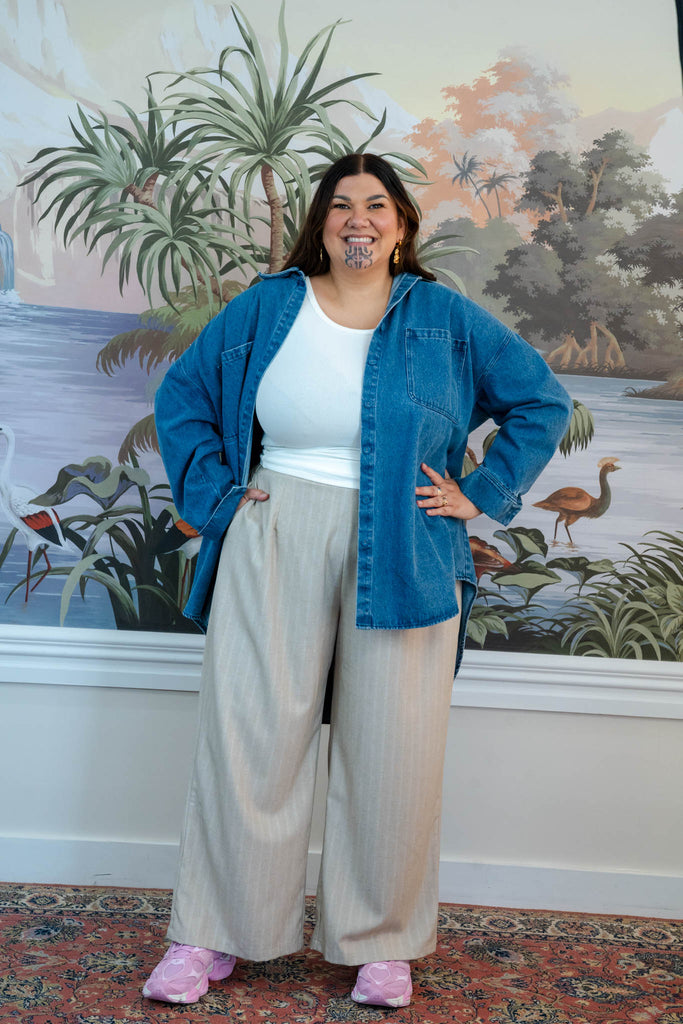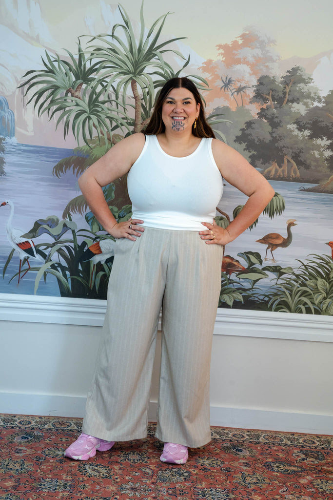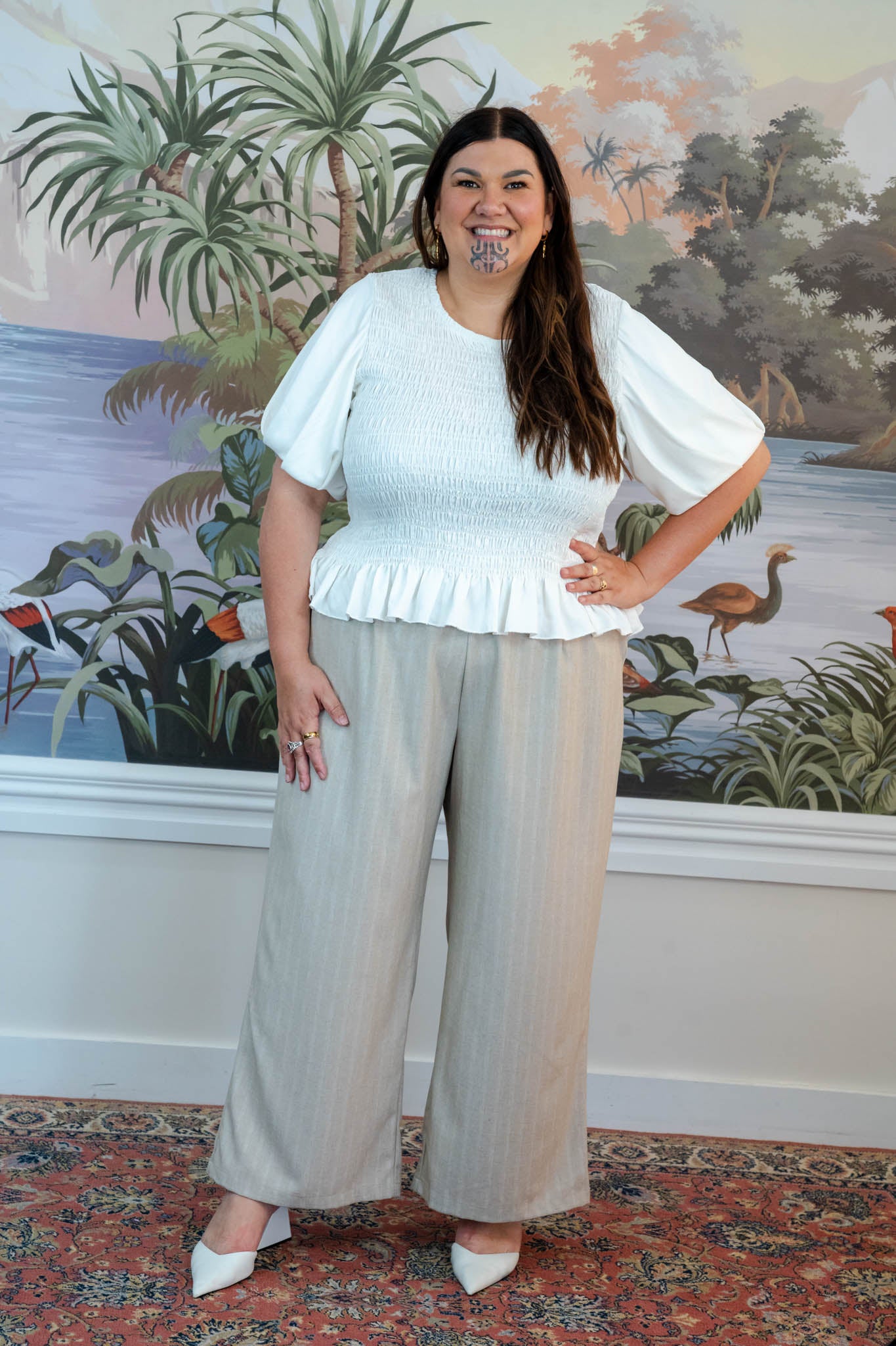 Introducing the Dawn Pants – your go-to for comfort and effortless style. Made in a classic beige pinstripe, these wide-leg pants are perfect for work, weekends, and everything in between. The soft, breathable fabric blend offers just the right amount of stretch, while the elasticated back waistband ensures a comfortable fit.