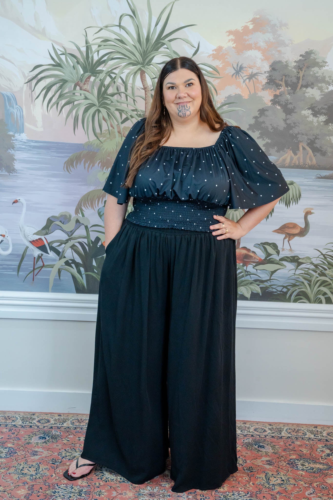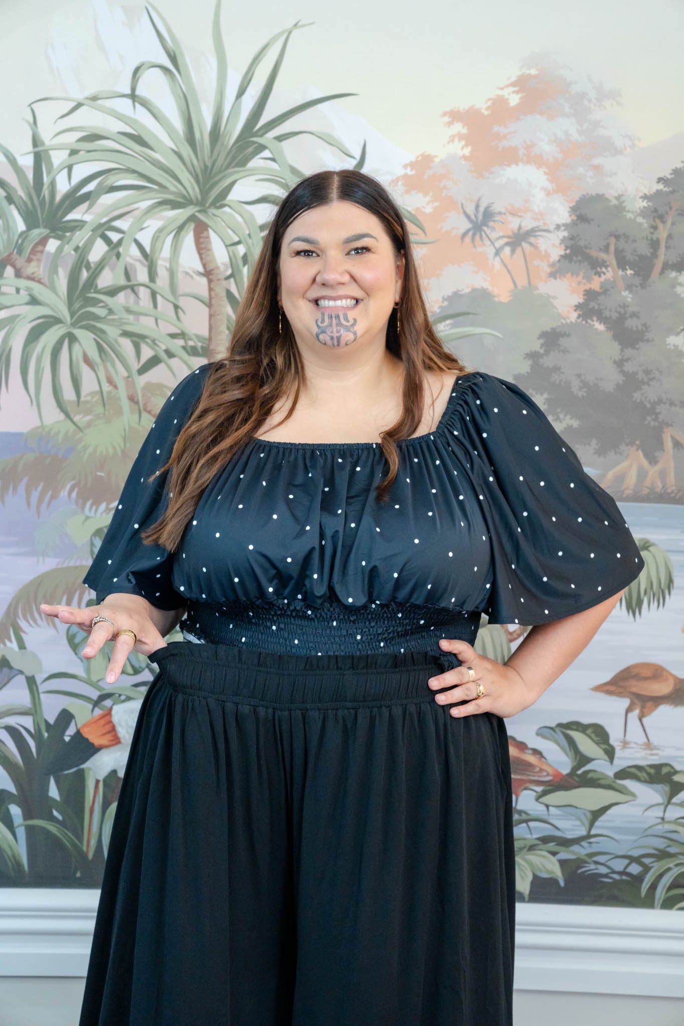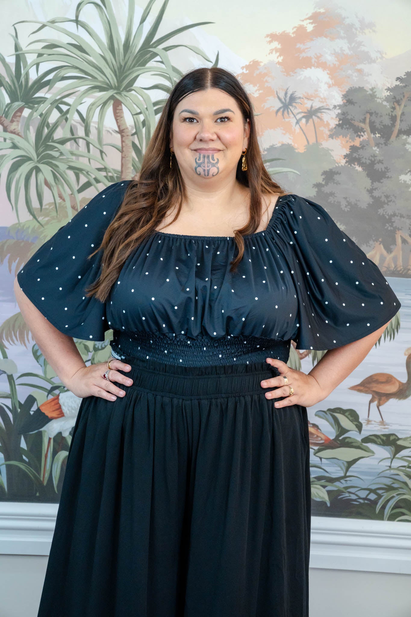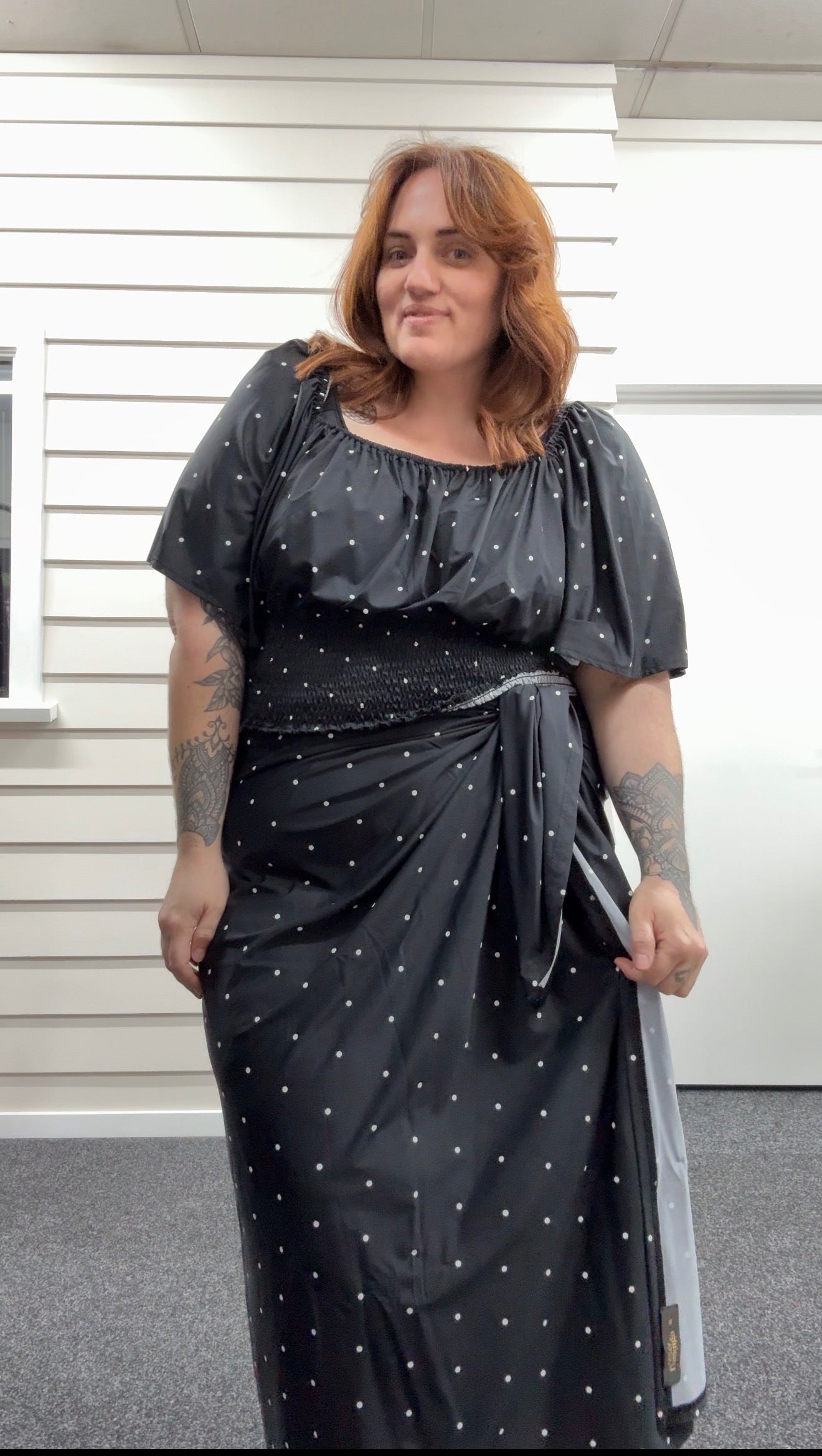 The shirred waist gives comfortable shape, while the elasticated neckline can be worn on or off the shoulders depending on how you like it. This version has been updated with a small amount of extra length and a little more room through the bust for added comfort.